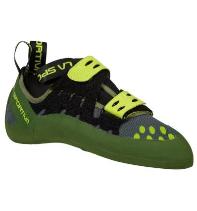 Chaussons confortables qui peuvent être portés longtemps. Idéals pour les débutants, pour les nouveaux de l’escalade en salle ou encore pour les expérimentés qui n’enlèvent pas leurs chaussons d’une voie à l’autre.