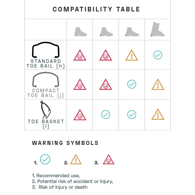 - Vendu avec la pochette de rangement, le système d’accroche semi-automatique « Toe basket » et automatique « Standard toe bail »