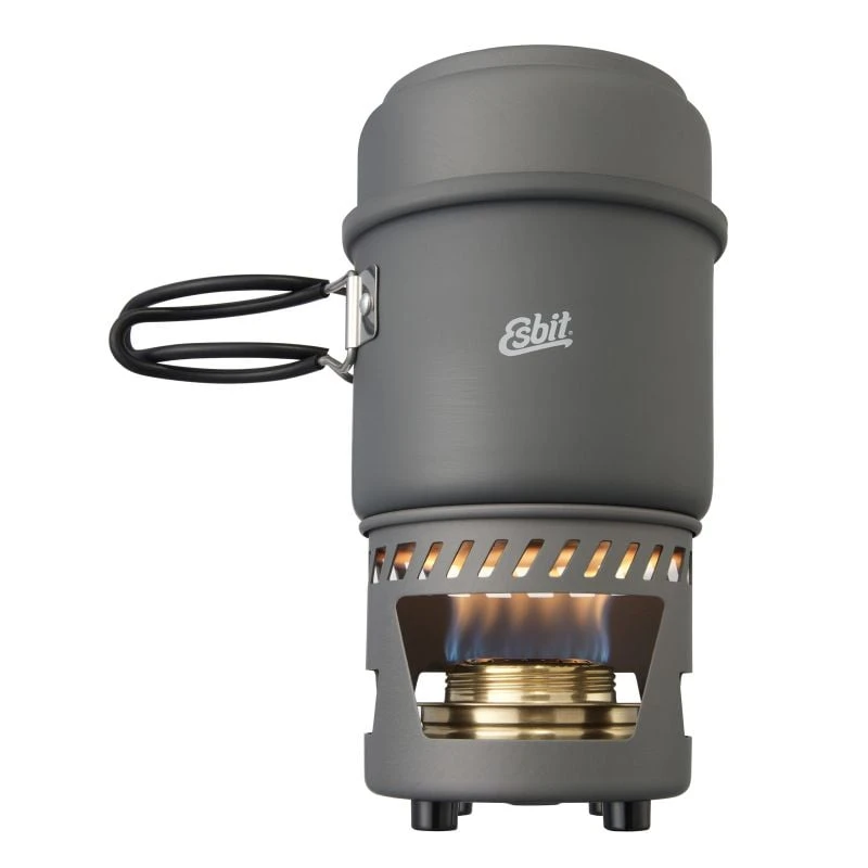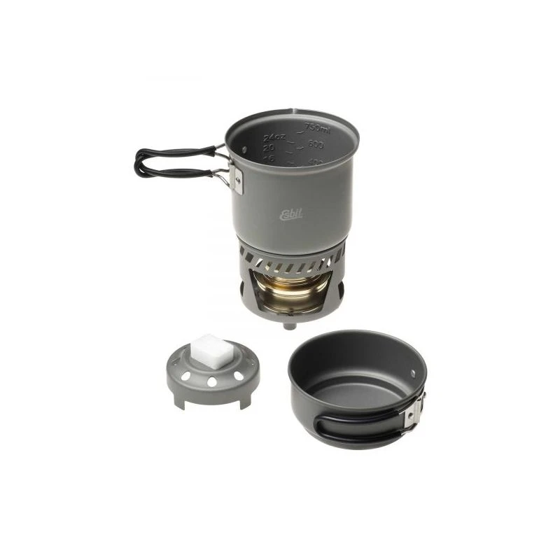 Si vous êtes souvent seul en déplacement, ce set de cuisine ESBIT compact, complet et particulièrement léger est fait pour vous. Le brûleur est en laiton et les autres éléments en aluminium anodisé dur.
